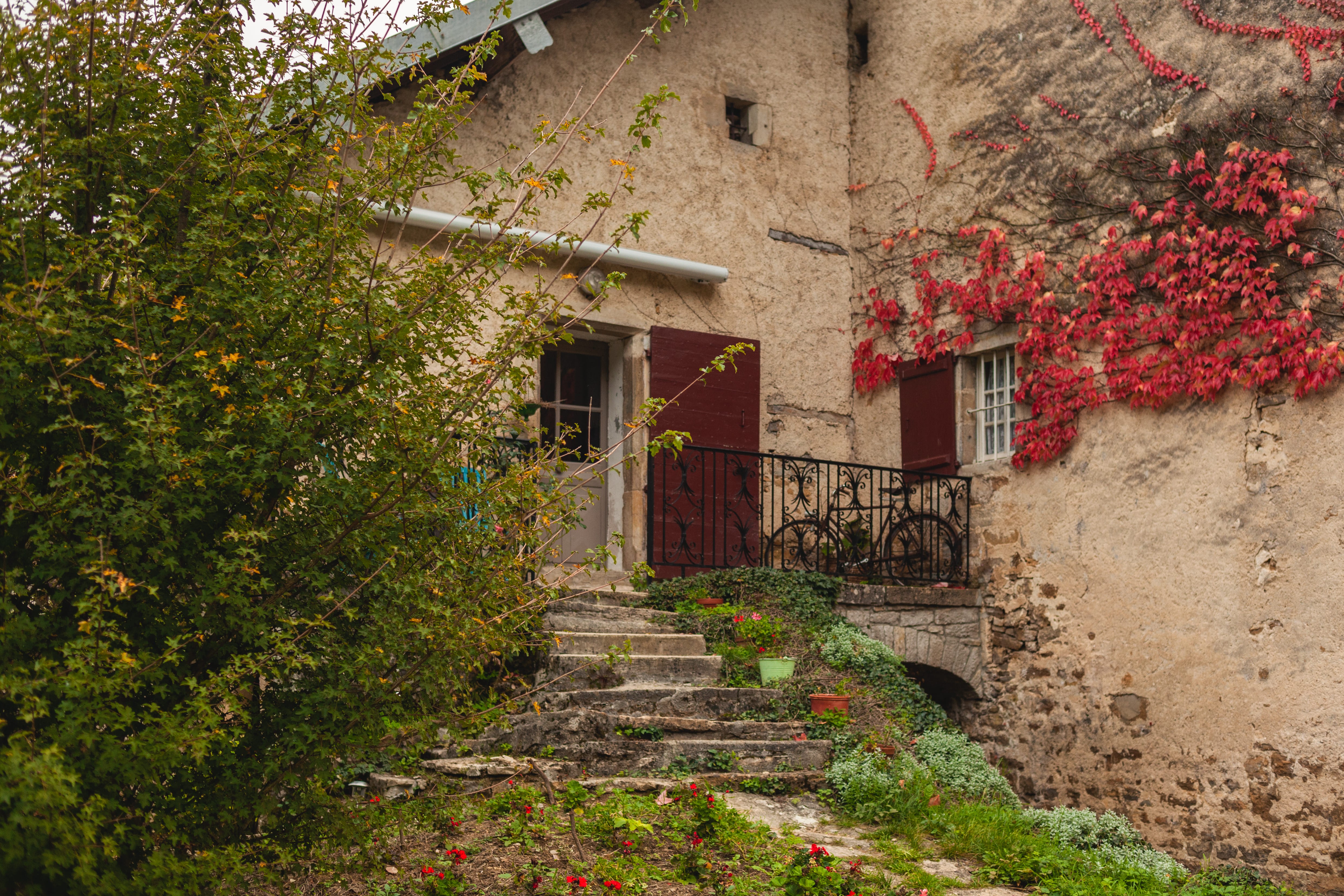 Le projet d’Antoine et de Julia n’avait rien à voir avec le Jura. « Nous avions décidé de nous installer au Brésil », explique Julia Naar. « C’est là que je suis née et que j’ai rencontré Antoine, alors vinificateur sans domicile fixe qui brassait de la bière et faisait un peu de vin. » En 2018, Antoine débarque dans le Jura pour une saison de vendanges. Les récoltes sont tellement généreuses qu’il a la possibilité de faire ses premiers millésimes à côté. « En cherchant une cave ou un chai, nous sommes tombés sur l’annonce de cette maison pour laquelle nous avons eu un véritable coup de cœur. Ça nous a bouleversé et donné envie de lancer ce projet de gîte et de vinification sur site. » La bâtisse date de 1765. Entre ses parquets d’origine et ses murs de pierre recouverts de vigne vierge, le couple est inspiré et se projette instantanément. « Le projet est très personnel dans le sens où nous faisons tout à deux et de nos propres mains, avec l’aide de nos familles et de nos amis, bien sûr. »