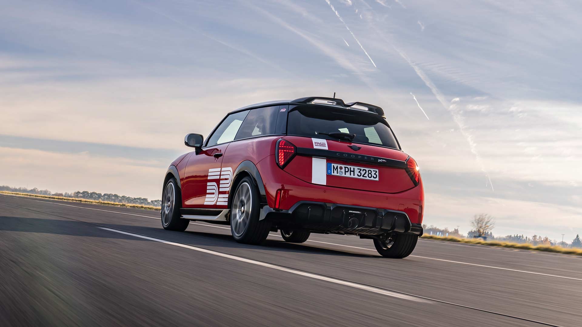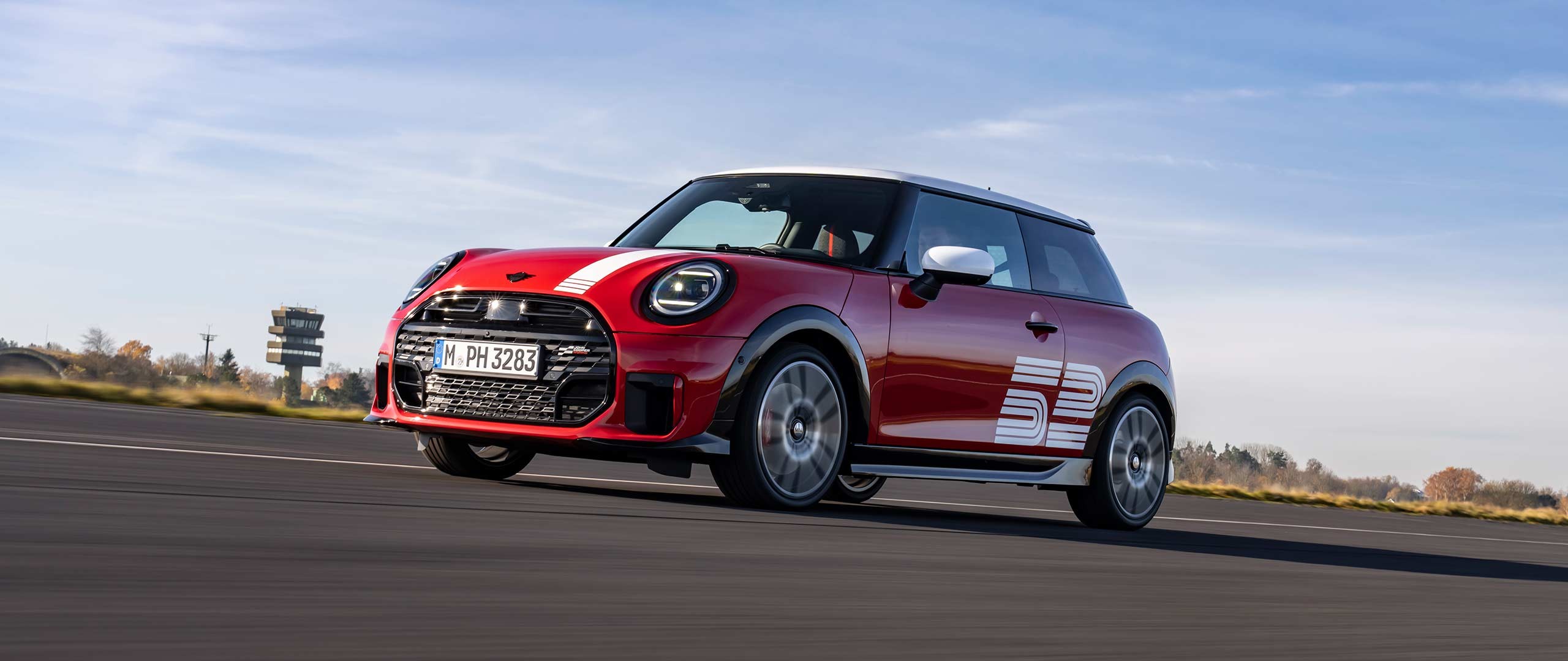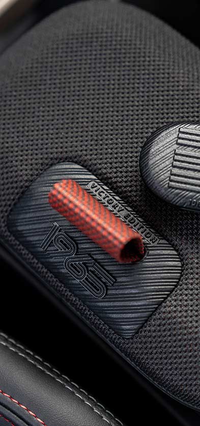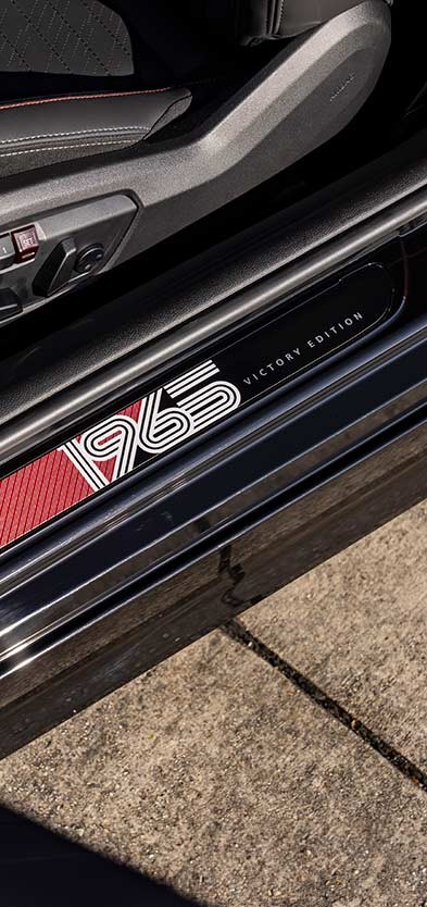 S’inspirant des couleurs emblématiques du sport automobile des années 1960, cette édition se distingue avec sa couleur Chili Red, rehaussée d’une bande blanche qui s’étend du capot, en passant par le toit, jusqu’à l’arrière du véhicule. Un élément distinctif exclusif de cette édition est l’inscription blanche « 52 » sur les deux côtés du véhicule, hommage au numéro de course de la voiture victorieuse historique de 1965. Le toit Glaced White, associé au toit panoramique en verre, crée un contraste clair, sportif et élégant avec la carrosserie.