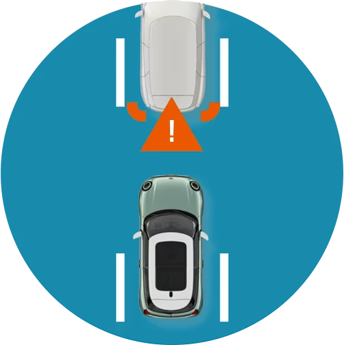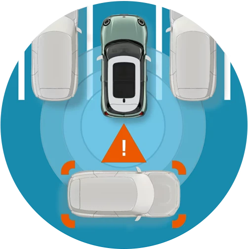 Votre MINI vous aide à faire vos marches arrière en toute sécurité grâce aux fonctionnalités d'alerte véhicules arrivant par l’arrière et de prévention des collisions arrière. Des alertes visuelles et sonores vous signalent les potentiels dangers derrière vous, vous aidant ainsi à éviter les collisions lors de vos marches arrière.