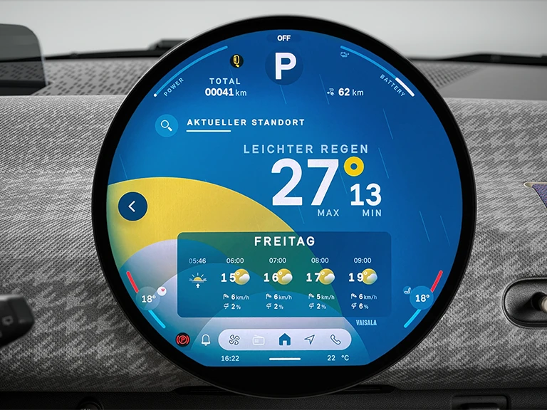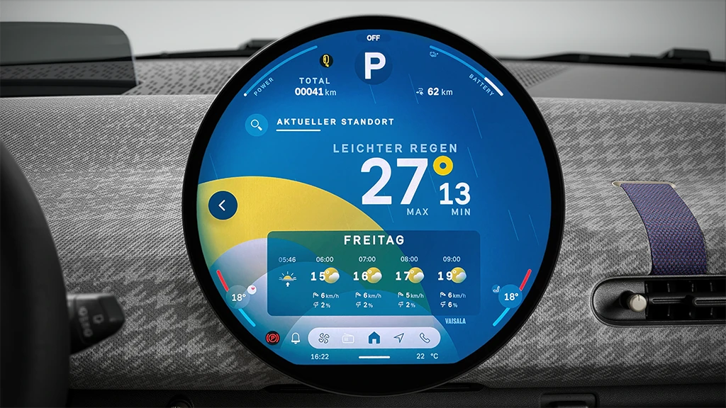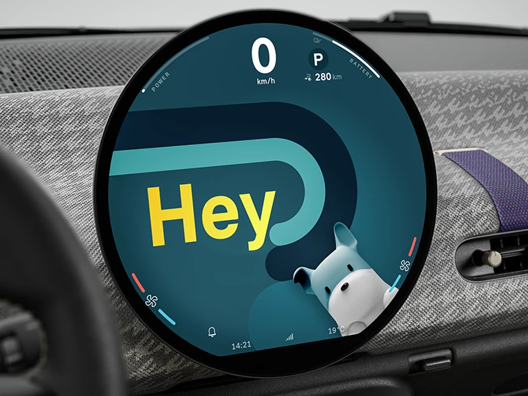 L’écran central iconique de 240 mm de diamètre avec son verre haute qualité est votre tableau de bord et votre centre info-divertissement et d’assistance à bord. Il se trouve que c’est aussi le tout premier écran d’affichage circulaire jamais créé.