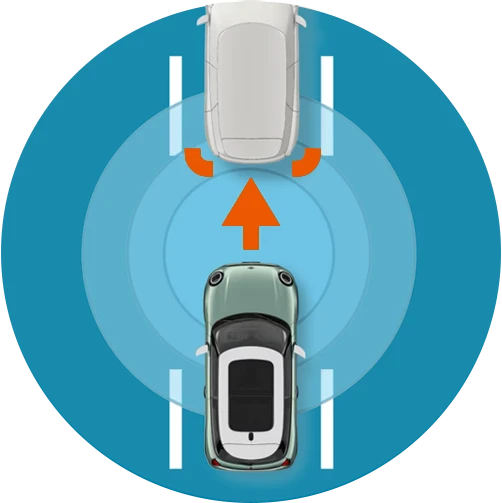 Grâce à la fonctionnalité «Alerte collision frontale», votre MINI est à l’affût de tout danger sur la route. Elle vous alerte des risques de collision et actionne automatiquement les freins si nécessaire, vous gardant ainsi à l’abri du danger.