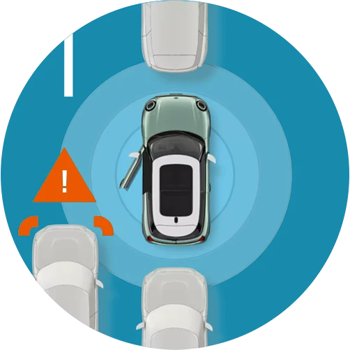 Votre MINI vous aide à faire vos marches arrière en toute sécurité grâce aux fonctionnalités d'alerte véhicules arrivant par l’arrière et de prévention des collisions arrière. Des alertes visuelles et sonores vous signalent les potentiels dangers derrière vous, vous aidant ainsi à éviter les collisions lors de vos marches arrière.