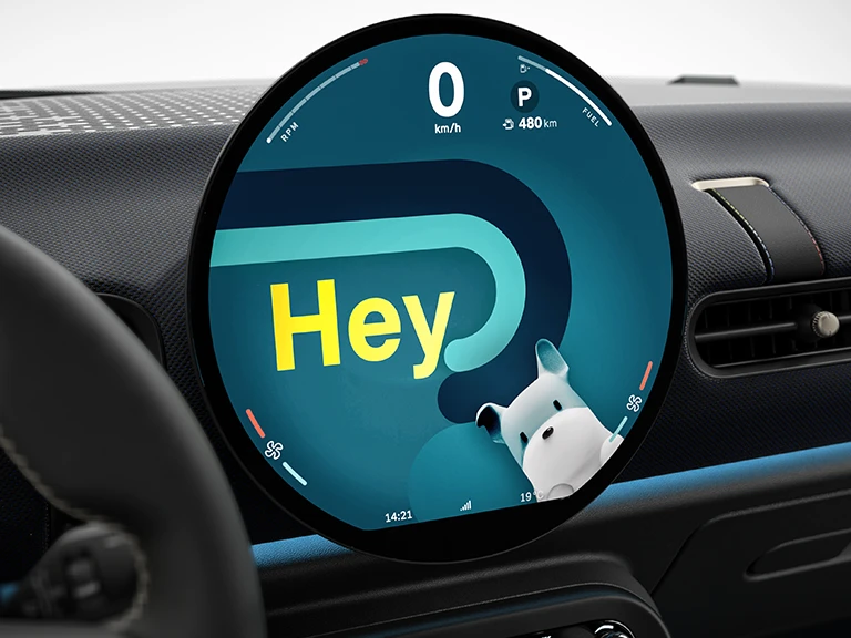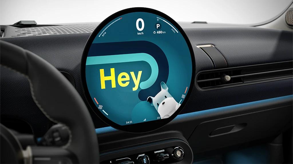 Le MINI Intelligent Personal Assistant de série vous permet d'utiliser votre voix pour commander des fonctions telles que la navigation, le téléphone, la radio, la température, les informations sur le trajet, et plus encore. Le système peut être activé à l'aide du message d'accueil « Hey MINI » ou en appuyant sur le bouton situé sur le volant. Cerise sur le gâteau, vous avez le choix entre deux avatars pour votre assistant personnel : Une version stylisée de votre MINI, ou la mascotte de MINI, disponible en supplément.