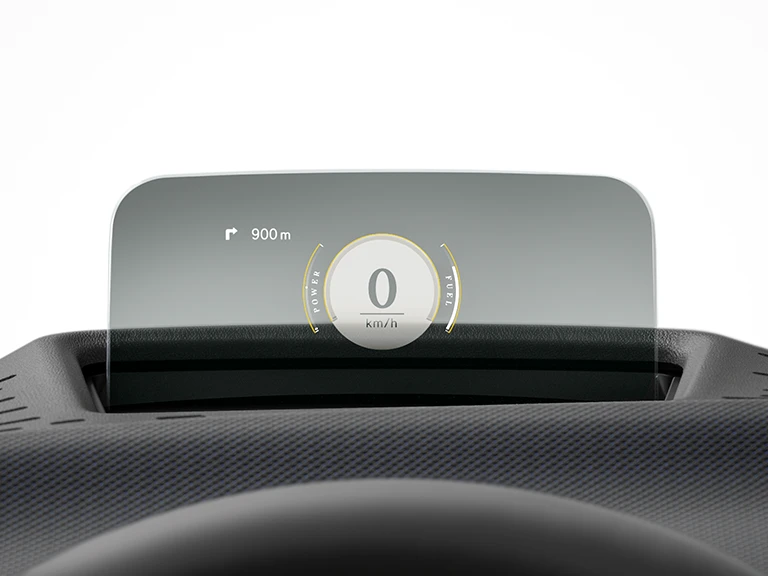 L'affichage tête haute en option offre un moyen pratique et intuitif de visualiser toutes les informations utiles à votre conduite directement dans votre champ de vision. En présentant l’information directement dans votre champ de vision, l’affichage tête haute vous aide à rester concentré sur la route.