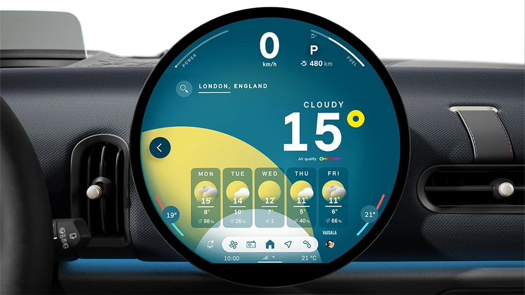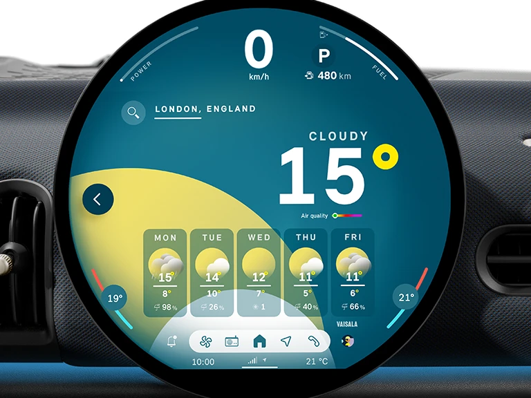 L’écran central iconique de 240 mm de diamètre avec son verre haute qualité est votre tableau de bord et votre centre info-divertissement et d’assistance à bord. Il se trouve que c’est aussi le tout premier écran d’affichage circulaire jamais créé.