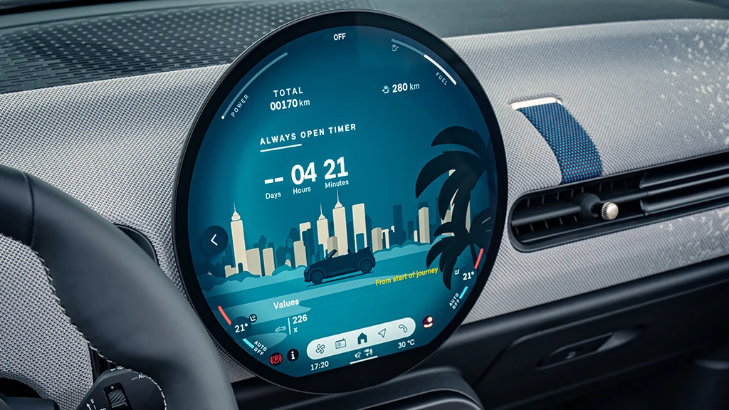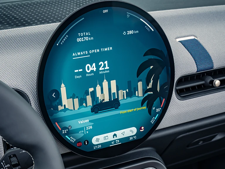 MINI Always Open Timer est une fonctionnalité uniquement proposée pour les modèles MINI Cooper Cabrio. Il permet de surveiller le temps que vous avez passé à conduire avec le toit baissé. Originale, cette fonctionnalité ludique est conçue pour marquer et encourager la conduite décapotée en gardant une trace de votre expérience de conduite à l’air libre.