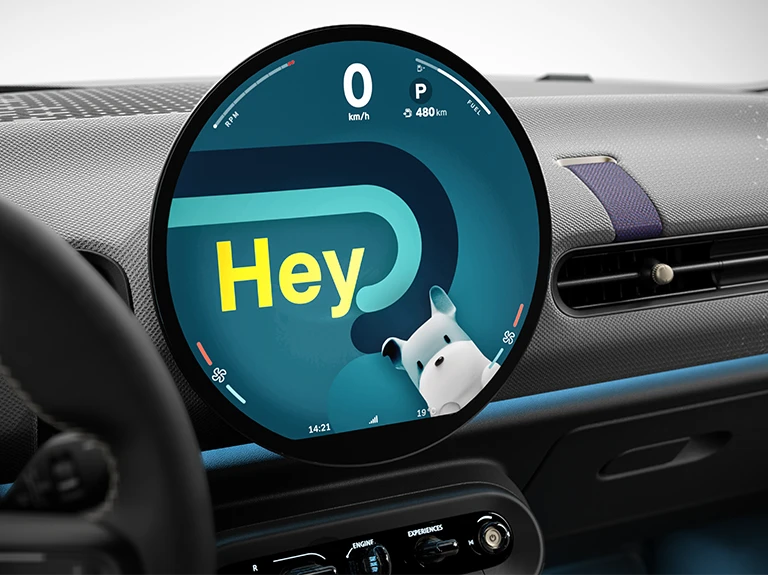 Le MINI Intelligent Personal Assistant de série vous permet d'utiliser votre voix pour commander des fonctions telles que la navigation, le téléphone, la radio, la température, les informations sur le trajet, et plus encore. Le système peut être activé à l'aide du message d'accueil « Hey MINI » ou en appuyant sur le bouton situé sur le volant. Cerise sur le gâteau, vous avez le choix entre deux avatars pour votre assistant personnel : Une version stylisée de votre MINI, ou la mascotte de MINI, disponible en supplément.