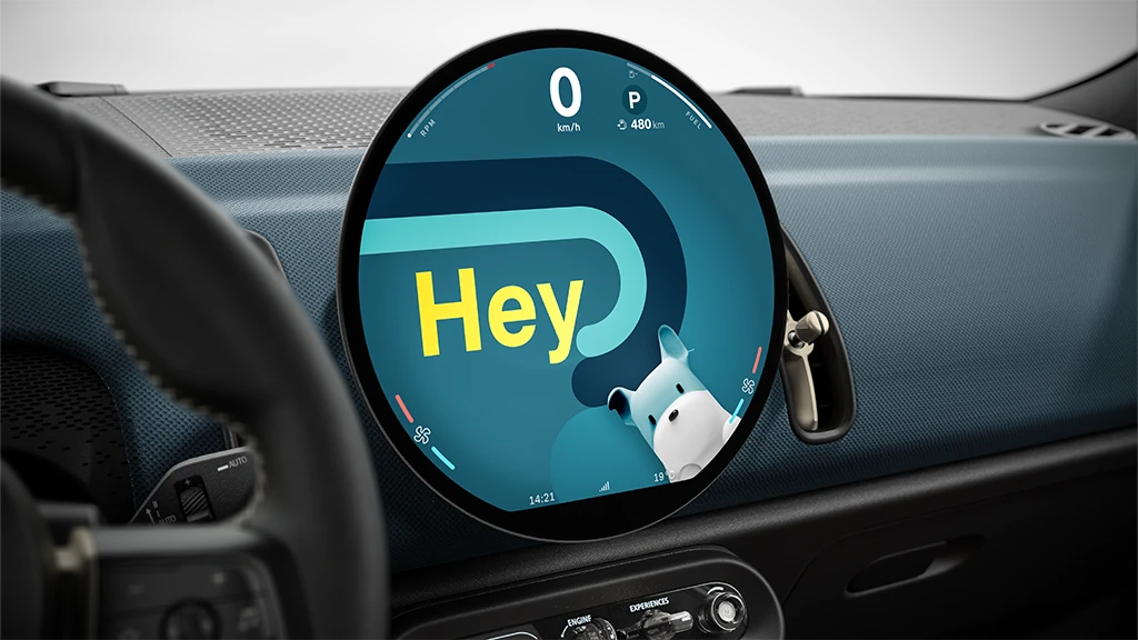 Le MINI Intelligent Personal Assistant de série vous permet d'utiliser votre voix pour commander des fonctions telles que la navigation, le téléphone, la radio, la température, les informations sur le trajet, et plus encore. Le système peut être activé à l'aide du message d'accueil « Hey MINI » ou en appuyant sur le bouton situé sur le volant. Cerise sur le gâteau, vous avez le choix entre deux avatars pour votre assistant personnel : Une version stylisée de votre MINI disponible en supplément.