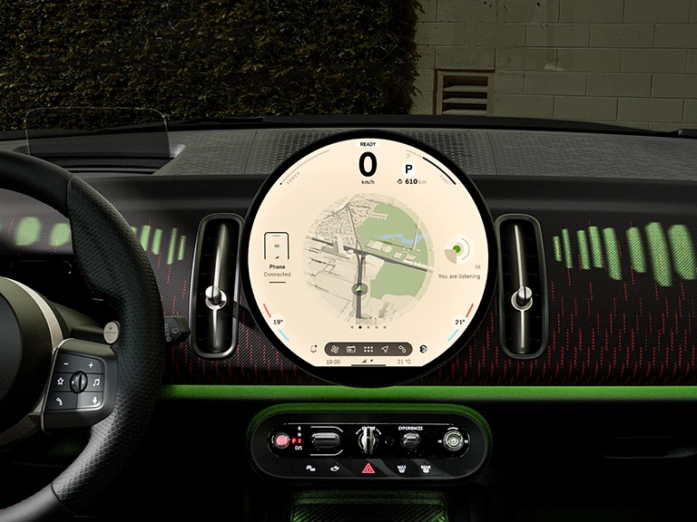 Prêt pour notre expérience utilisateur la plus intuitive et la plus interactive à ce jour ? Bienvenue à l'intérieur ! Transformez tous vos voyages en une expérience numérique inoubliable. Choisissez parmi les huit MINI Experience Modes. Chacun de ces modes transforme les couleurs thématiques, l’ambiance lumineuse et sonore et le style dans votre habitacle.